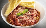 Traditional spaghetti with marinara sauce served with homemade meatballs from the family recipe, topped with shaved asiago cheese & fresh parsley.