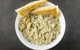 Fettuccine noodles & tender grilled chicken tossed in a rich, creamy alfredo sauce made with asiago & romano cheeses with a hint of garlic & fresh parsley.